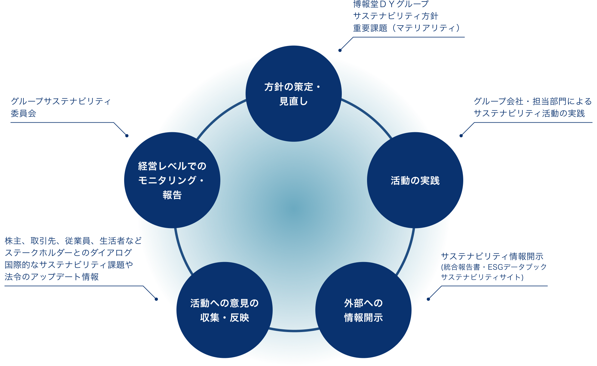 当社グループでは、サステナビリティ方針に基づき、生活者の想いがあふれ、いきいきと活躍できる社会を創り出すための重要課題(以下、マテリアリティ)を特定しています。適切なマネジメントの元、優先度と重要度を明確にして取り組みを推進することで、実効性のあるサステナビリティ経営を実現します。