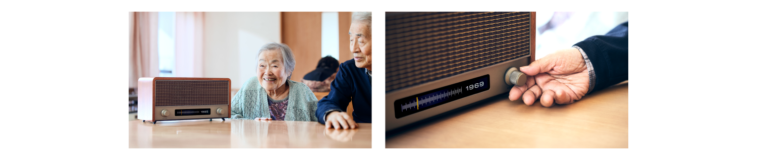 RADIO TIME MACHINEで過去のニュースやヒット曲に触れることで、利用者は自分自身の思い出が呼び起こされ、その結果、心理的な安定やさらなる安心感につながり、日々の生活により一層の彩りをもたらせると考えています。また、個人で楽しむことに加え、利用者同士の会話や交流が生まれることで、ウェルビーイングの向上に寄与することを期待しています。