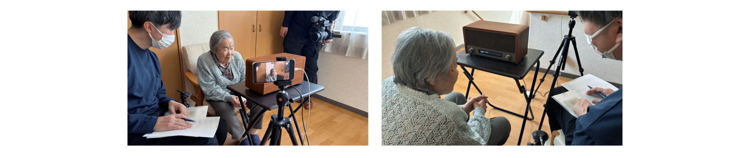 実証前に利用者様とお話しすると、ご自分の両親のお名前や若い頃に働いていた会社など、記憶を思い出せない様子がありました。一方、実証時に「RADIO TIME MACHINE」を使用し、利用者が若い頃のニュースやヒット曲を聴いてもらいながら対話をし、もう一度同じ質問をしたところ、即答でご両親のお名前や働いていた会社を話してくださるなど、過去の記憶をハッと思い出す瞬間が数多く見受けられました。