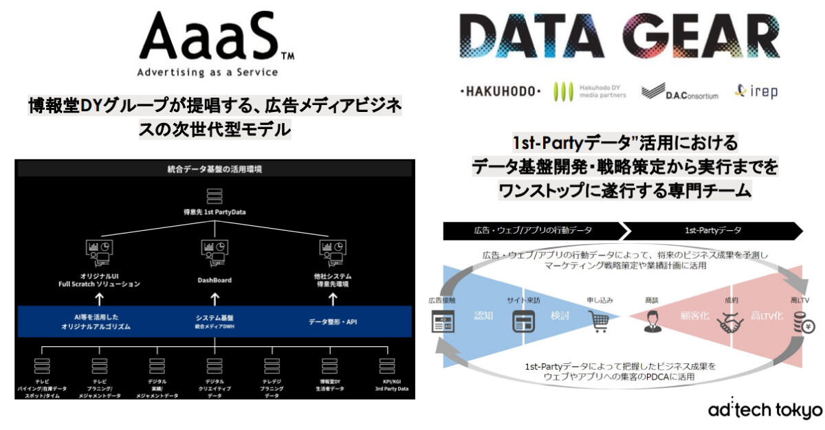 ではここで弊社の紹介を少しさせてください。我々は広告産業をDXするべく、AaaS※というメディアビジネスの次世代型モデルを提唱しています。そこで1st Party Dataの視点というのもいくつか用意していますし、博報堂DYグループのDATA GEARという専門チームでは、まさに1st Party Dataを活用して、LTVが高そうな人に対して配信をかけていくといった視点もご用意しています。