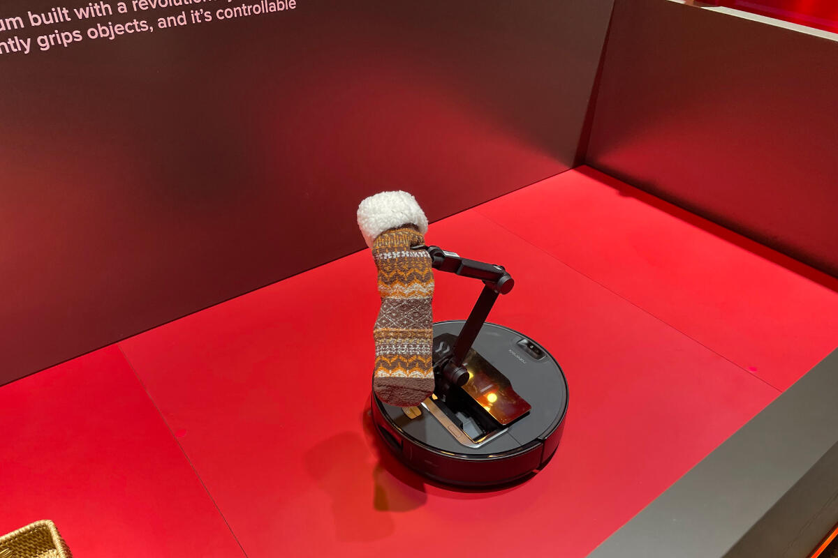 Roborock の「Saros Z70」は、ごくふつうに見える円形のロボット掃除機に5軸のアームを内蔵。部屋を掃除中に脱いだままの靴下やくしゃくしゃのティッシュ等を見つけると本体からアームを伸ばし、バランスを保って器用につかみ、それぞれに対応した箱や棚、ごみ箱などの中に移動させることが可能。生活に身近な現実世界でAIによって暮らしが便利になる様子を示していました。