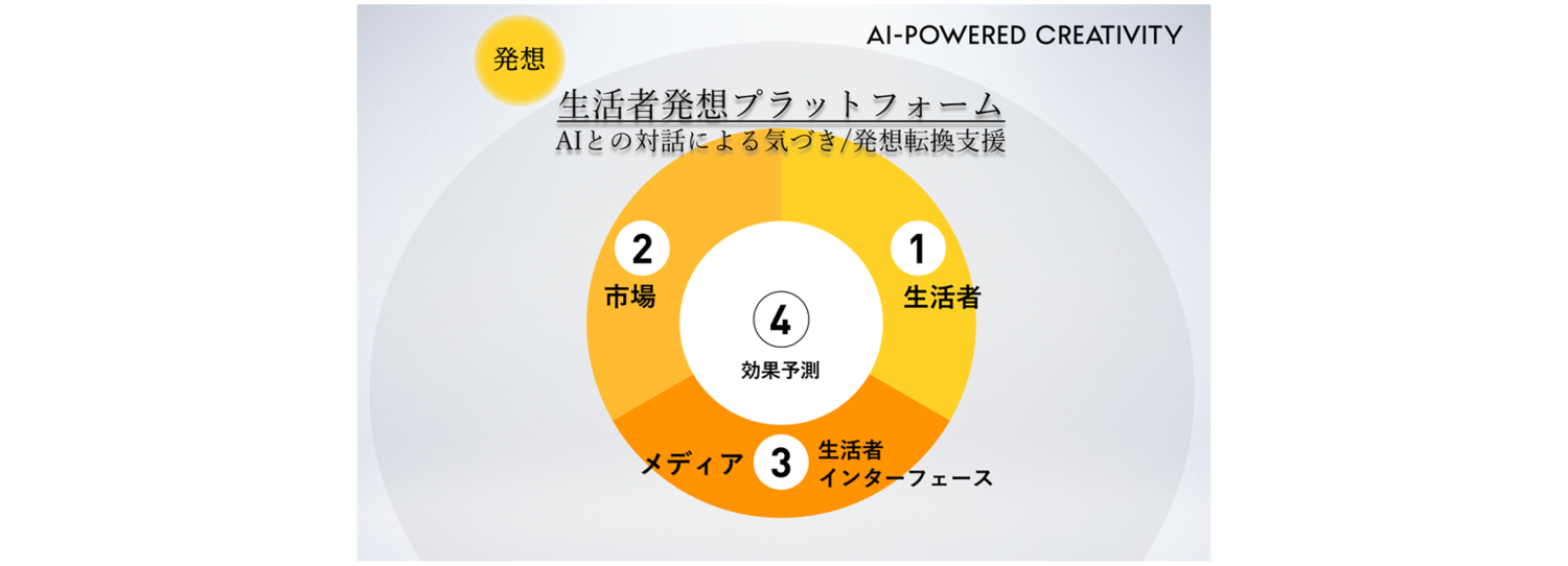 「生活者発想プラットフォーム」:生活者・市場への深い理解や、新しい発見・価値創造をAIとともに行い、AI×生活者発想でビジネスの拡大を支援する新しい発想支援基盤。