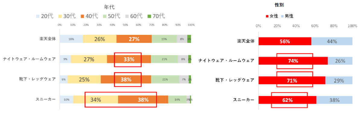 G3=楽天のアイテムジャンル第三階層で今回の場合はメンズ/レディースを活用/N=ユーザー数