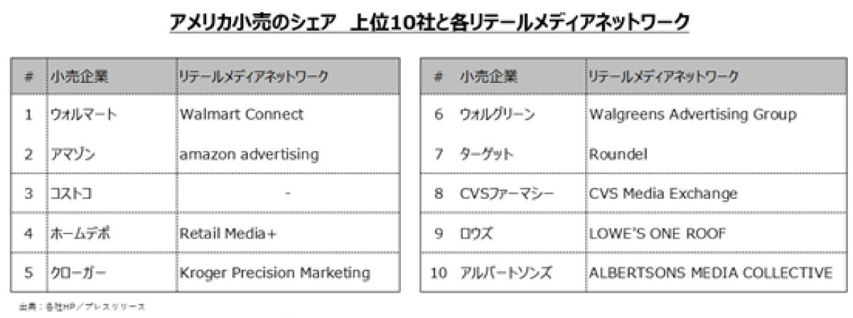 現在では、アメリカ大手小売業を中心に次々とオンラインチャネルとしてのメディアネットワークが立ち上がり、大きなリテールメディア市場が成立しています。(図2. 参照)