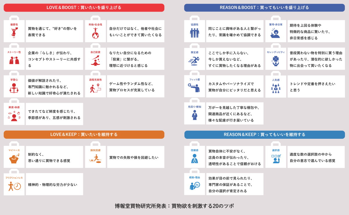 そして検証の末に集約された20の要素を、令和の"買物欲を刺激する20のツボ"として独自定義したのです。