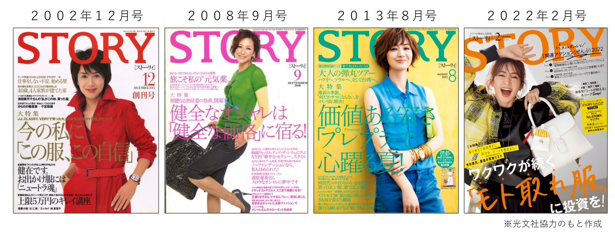 光文社では年齢・趣味趣向など様々な切り口で女性誌を発行しておりますが、私はアラフォー女性向けの『STORY』という雑誌の編集長を長く務めてきました。そこで今回、雑誌『STORY』の表紙の変遷から買物意識の変化を読み解いてみました。
