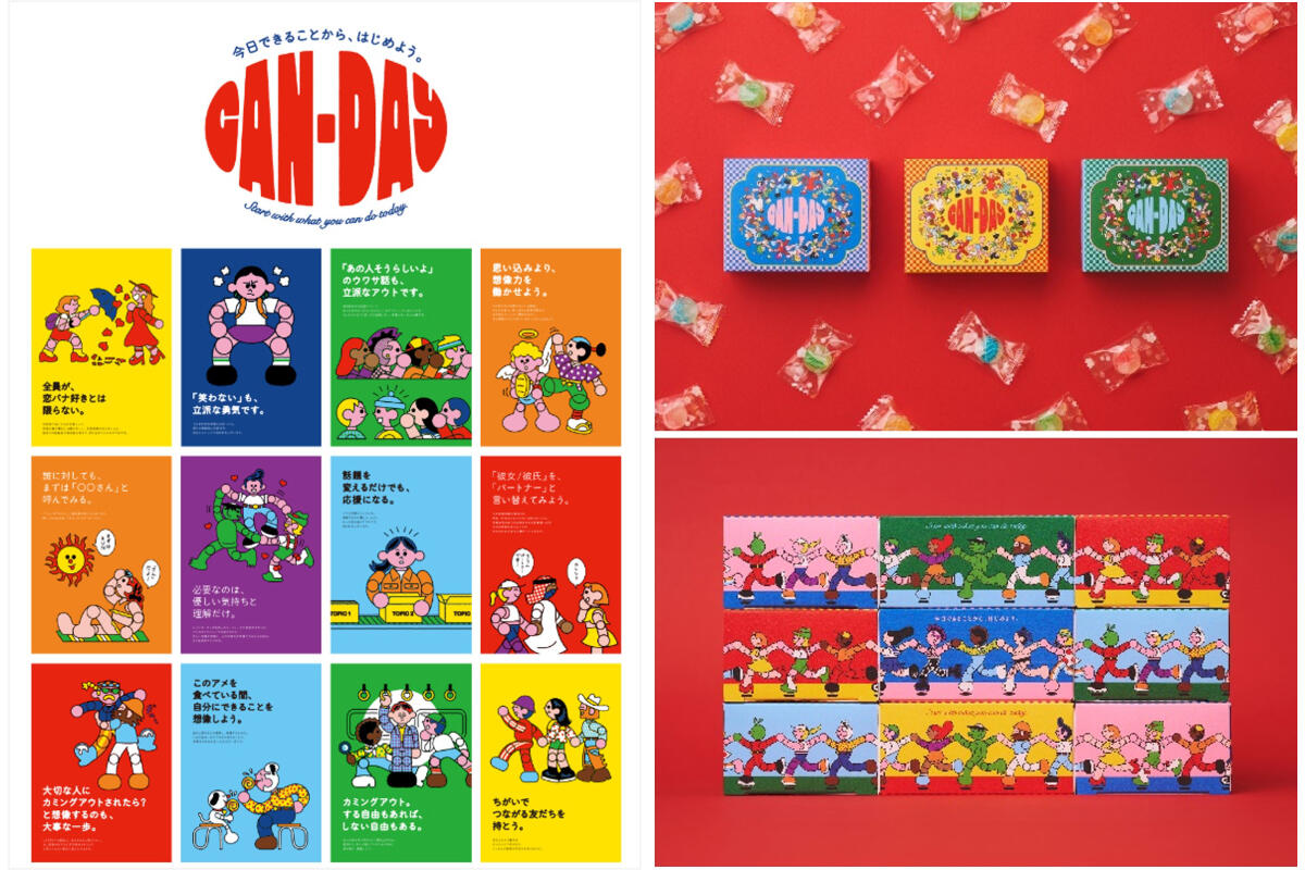 さらに、カラフルなキャンディと、さまざまなアクションが描かれたステッカー(12種類のうちランダムで1枚)、そしてステートメントカードをセットにしたキャンディボックスを、アンケートにご協力いただいた来場者に配布。キャンディを食べながら、ご自分で、またはチームの仲間やご家族、友人など大切な誰かと一緒に、今日からできる小さな一歩に思いをはせる日(CAN-DAY)になれば、という思いを込めています。