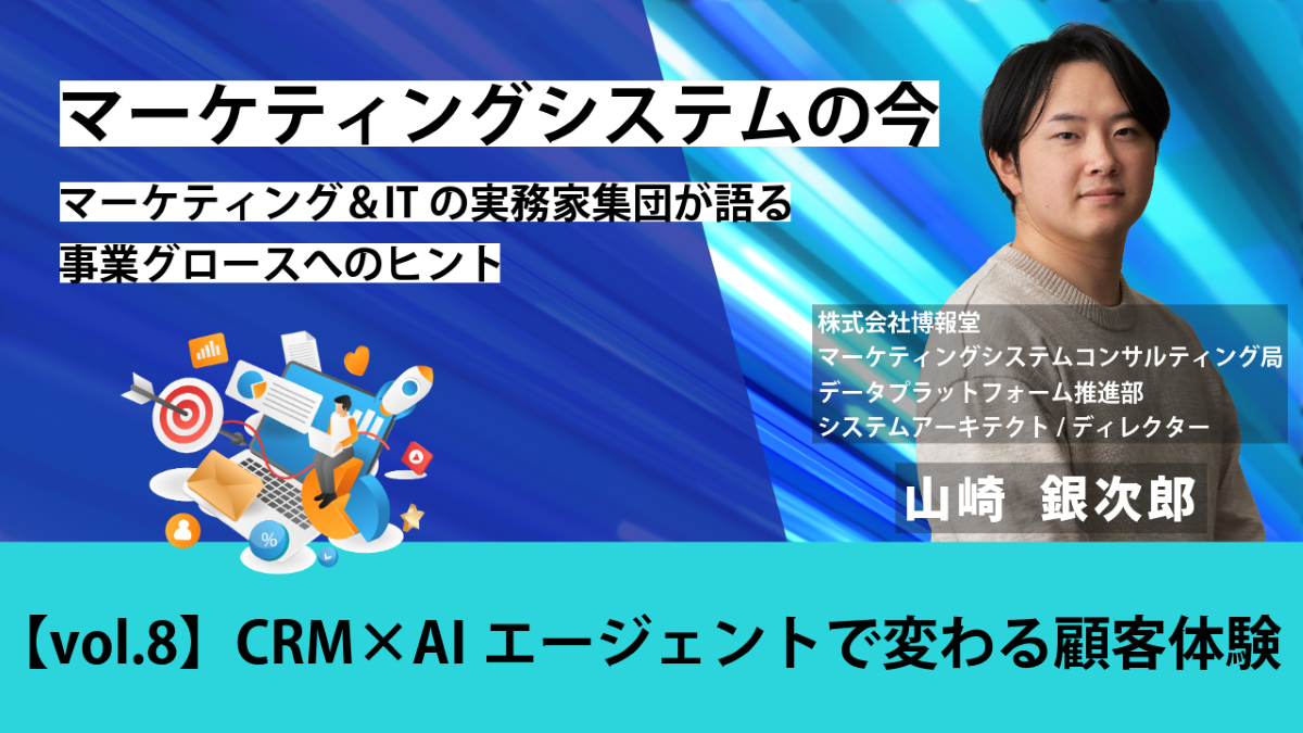 第8回のテーマは「CRM×AIエージェントで変わる顧客体験」です。近年、生成AIの進化は目覚ましく、中でも自律的に思考し行動するAIエージェントの登場は、CRMにも大きな変化をもたらしています。一方で、「AIエージェントには興味があるものの、どう使えばいいか分からない」「ユースケースは理解できたものの、具体的な導入ステップが見えてこない」といった声も少なくありません。