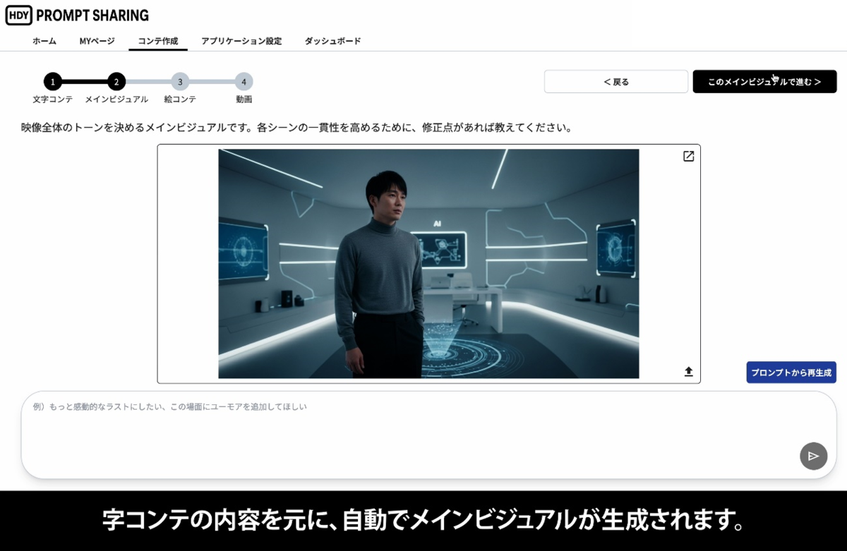 各工程でAIと対話していくことで、よりリアルな映像を制作できる仕組みになっています。