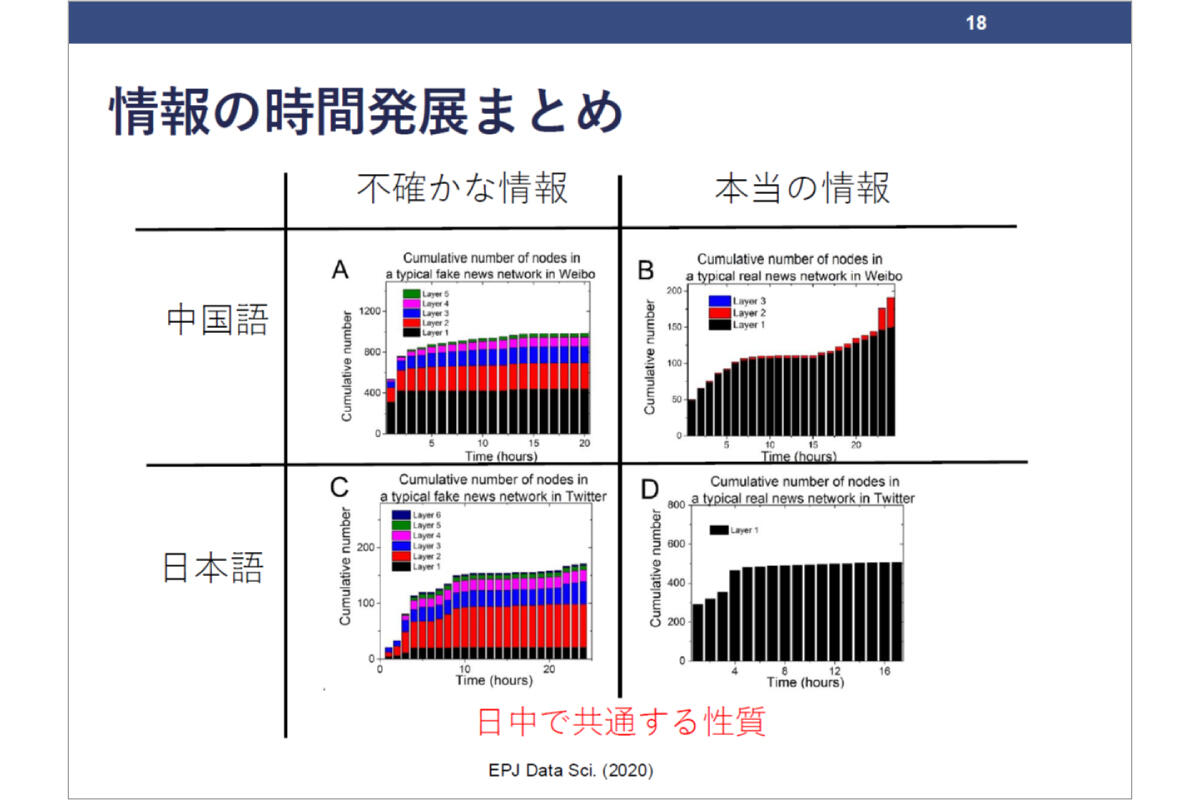 さらに、「国によって異なるのか」を確かめるため、2018年に共同研究者たちと中国語のSNS・微博(ウェイボ)でも検証したのですが、共通する性質があるとわかりました(図4)。