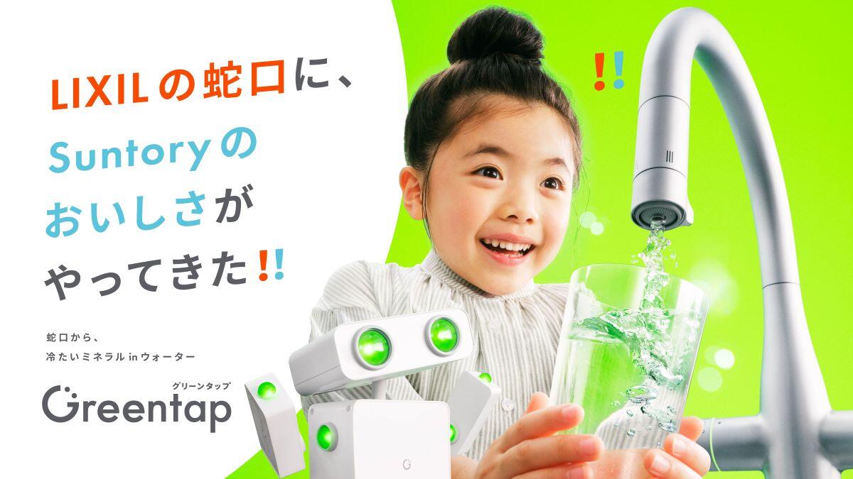 Greentapは専用の蛇口とユニットを取り付けるだけで、家庭で手軽においしい水を楽しむことができるサービスです。 LIXILの浄水カートリッジでろ過した水道水に、サントリー食品が開発した植物ミネラルエキスをプラスすることで、おうちの蛇口をひねるだけで、雑味がなく冷たくておいしい「ミネラル in ウォーター(※)」を楽しめます。