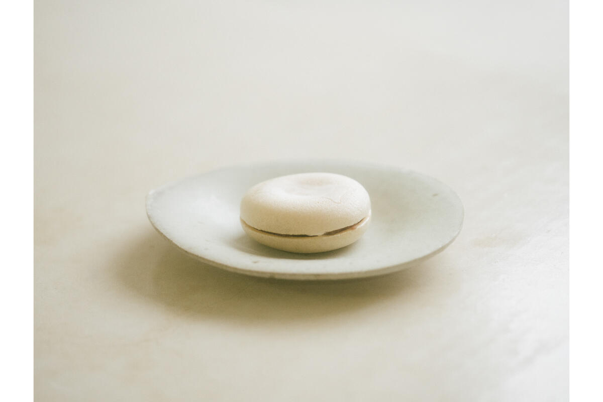 まず生地には和三盆糖を使っています。和三盆糖はすばらしい素材なのですが、現代の私たちが日常でコーヒーなどと一緒に食べると、甘さが少し強く、口の中が重くなる感覚がありました。もっと軽やかで、口の中でホロホロと溶けるような、現代版の和三盆の形はないかとたくさん考えました。