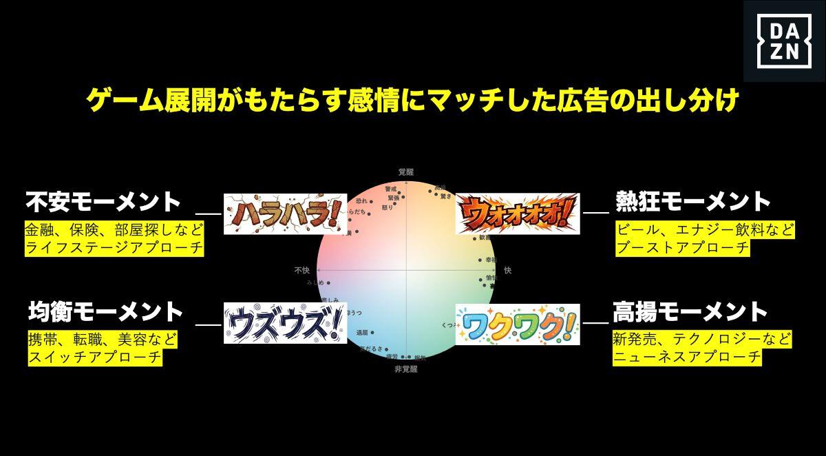 -AIで感情を可視化する、というとテクノロジーの側面に光が当たりがちですが、データをいかにマーケティングに活かすかは、広告のクリエイティビティやファンダムを知り尽くしたDAZNの知見が重要ということですね。
